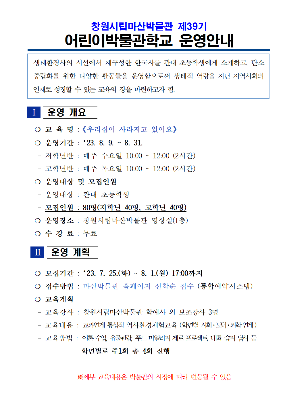 [홍보]창원시립마산박물관 어린이박물관학교 운영안내